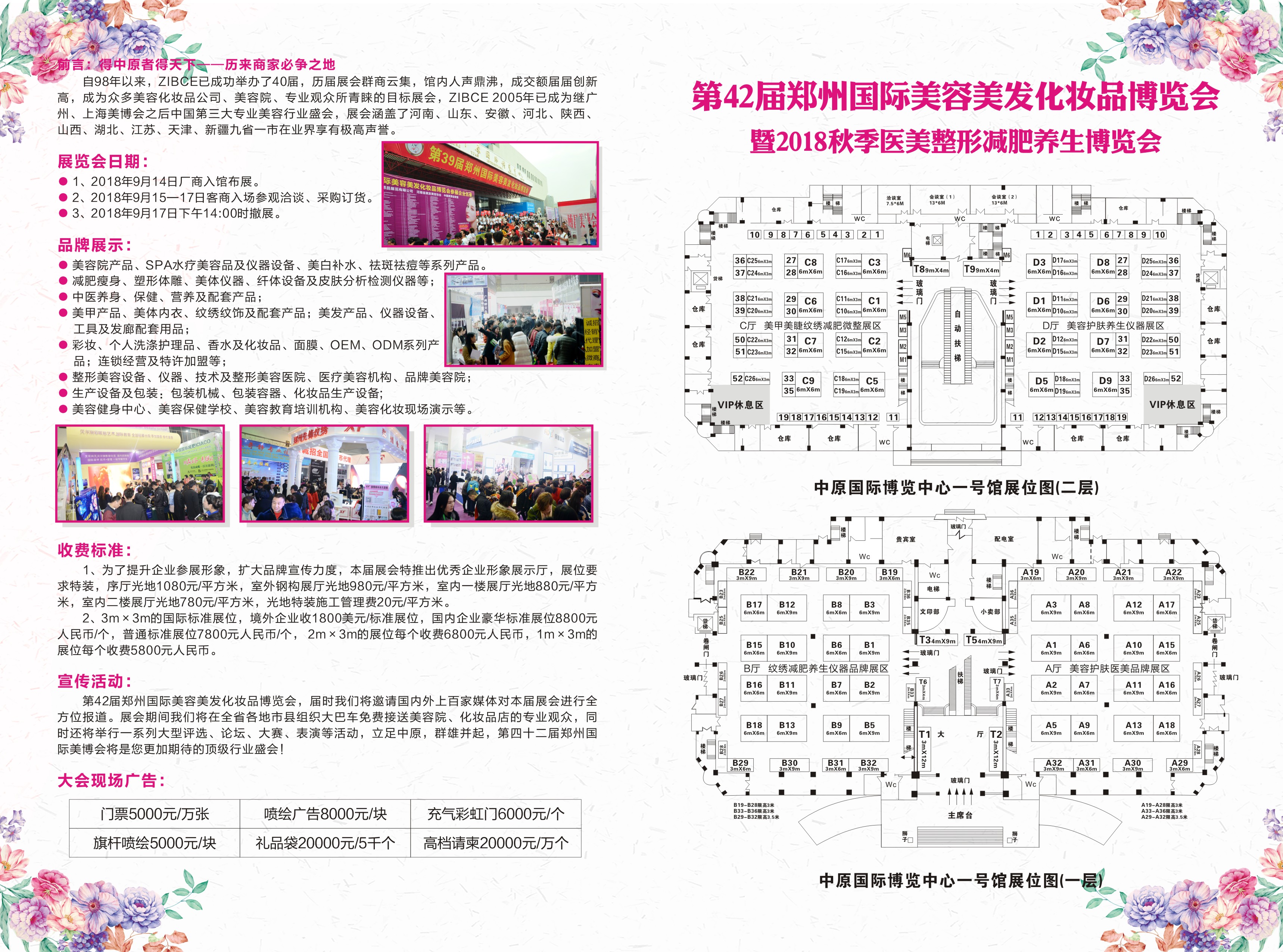 1、為了提升企業(yè)參展形象,擴(kuò)大品牌宣傳力度,本屆展會(huì)特推出優(yōu)秀企業(yè)形象展示廳,展位要求特裝,序廳光地1080元/平方米,室外鋼構(gòu)展廳光地980元/平方米,室內(nèi)一樓展廳光地880元/平方米,室內(nèi)二樓展廳光地780元/平方米,光地特裝施工管理費(fèi)20元/平方米。