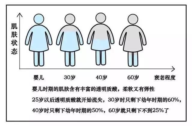 隨著年齡增長(zhǎng),我們體內(nèi)的透明質(zhì)酸在流失,承載水分的透明質(zhì)酸少了,皮膚水分隨之減少,出現(xiàn)細(xì)紋、皺紋以及皮膚松弛。一個(gè)保養(yǎng)小常識(shí)就是,不管做什么保養(yǎng)第一步都是補(bǔ)水,最后一步都是防曬,敲黑板了同學(xué)們,因?yàn)樽贤饩€會(huì)加速透明質(zhì)酸HA流失破壞,補(bǔ)充水分并和防曬是重中之重。