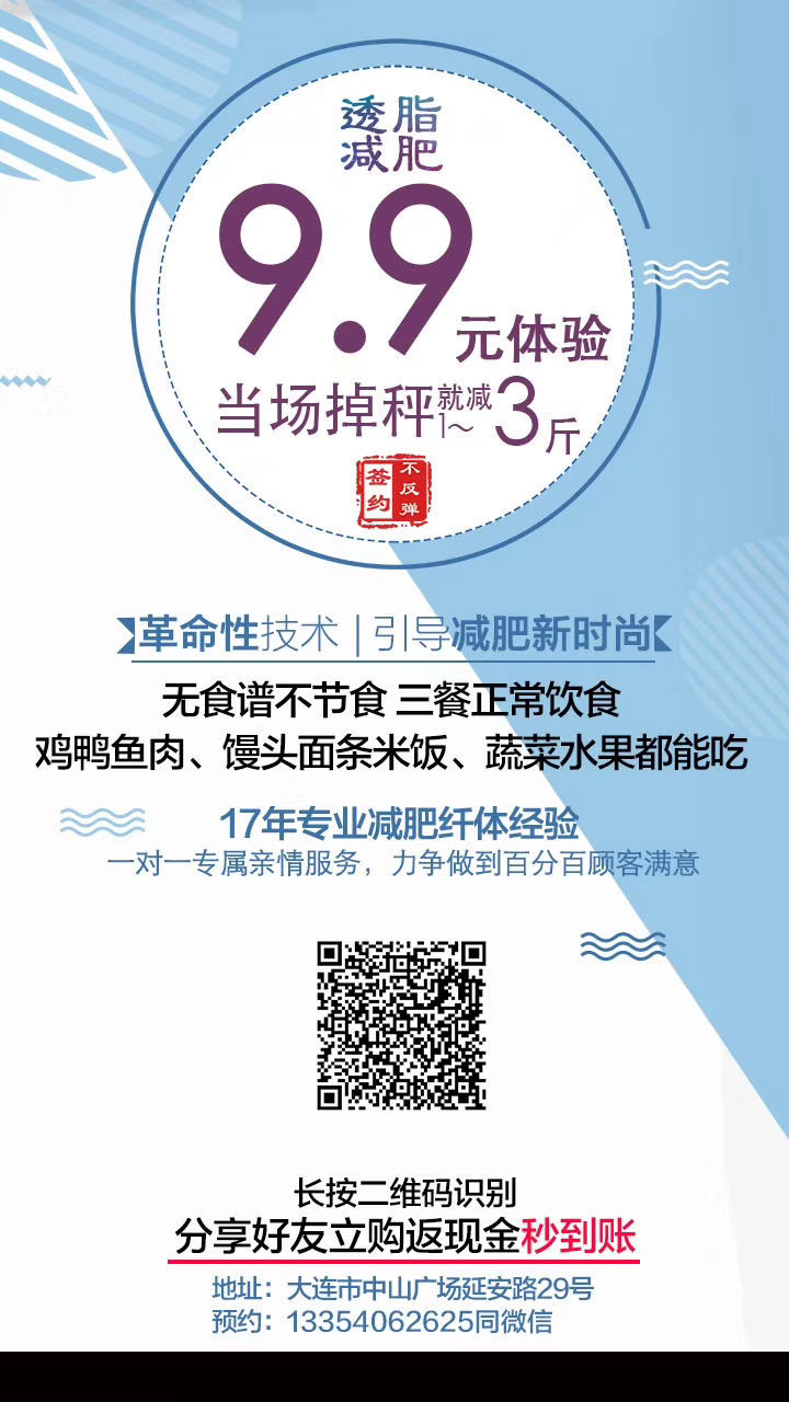 國(guó)外引進(jìn)的高科技透脂器有600多溫灸點(diǎn),釋放出的熱能、磁能、光能、生物能量等,配合草本植物產(chǎn)品作用于人體表面靶向脂肪密集區(qū),加強(qiáng)自體代謝二十五分鐘,一次就減1—3斤,一個(gè)月減10斤—30斤,簽約減肥承保三年不反彈;減皮下脂肪、減內(nèi)臟脂肪、減血液脂肪;想瘦哪里瘦哪里,健康瘦才會(huì)形體美,養(yǎng)生式減肥更科學(xué)更安全。