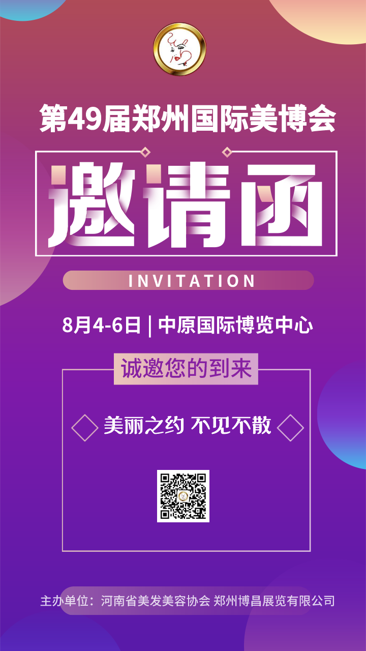 引領(lǐng)時尚潮流·傳播靚麗人生,由河南省美發(fā)美容協(xié)會,鄭州博昌展覽有限公司共同主辦的第49屆鄭州國際美博會,將于8月4-6日在中原國際博覽中心盛大舉行!此屆展會再次超越升級,展會規(guī)模、展區(qū)細(xì)分、展會品質(zhì)大幅提升,展覽面積36000㎡,觀眾100000+,品牌20000+,展商1300+。第49屆鄭州國際美博會,敬請期待!